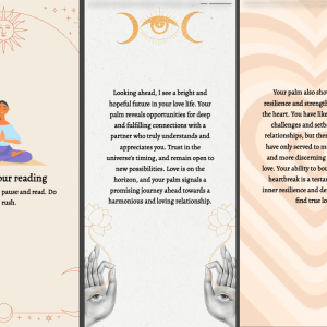 Your palm reading is revealed to you instantly online. Simply take a picture of your palm and select the readings